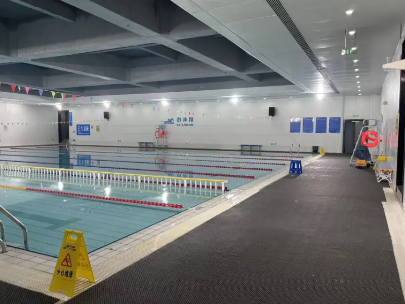 Üzgüçülük hovuzunun xarici görünüşü, metal balıq miqyaslı panel sisteminə malikdir, fasitin əyriliyi ilə dəyişir və günəş işığı istiqamətində dəyişir, "su axını" artırır. Bağlı hovuz ərazisinin bütün dam quruluşu, quruluş məntiqinin, struktur məntiqinin açıq ifadəsini və məkan miqyasını və idman məkanının güc hissini möhkəmləndirdiyini vurğulayan bir dəstə ilə məruz qalır. Məkan iki hovuz evləri: bir yarış hovuzu və bir məşq hovuzu. Rəqabət hovuzu 50 metr uzunluğundadır və eni 25 metr, 8 zolaqlı; Təlim hovuzu, 6 zolaq olan 50 metr uzunluğundadır və geniş 17 metrdir. Hər iki hovuz 2 metr dərindir.